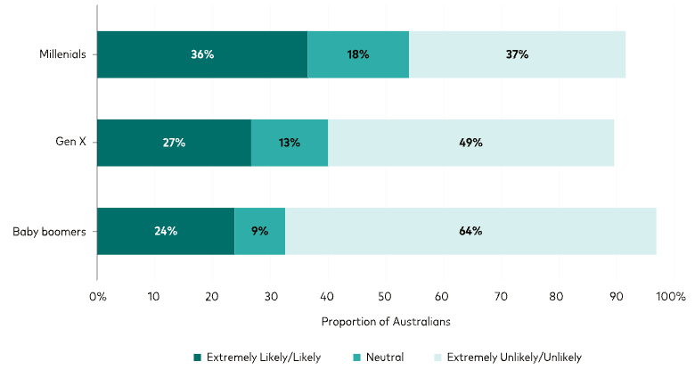 Figure 1: Self-assessed likelihood of having a mortgage at retirement by generation